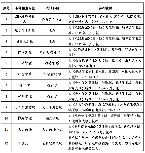 我校对报考国际经济与贸易、电子信息工程、机器人工程、软件工程、工商管理、市场营销、会计学、财务管理、人力资源管理、物流管理、电子商务专业的退役大学生士兵考生组织综合考查。