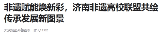 下一条:【大众网】非遗赋能焕新彩 济南非遗高校联盟共绘传承发展新图景
