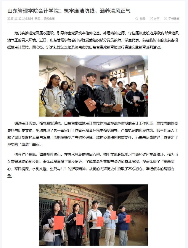 下一条:【大众网】山东管理学院会计学院:筑牢廉洁防线,涵养清风正气