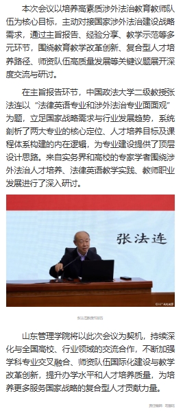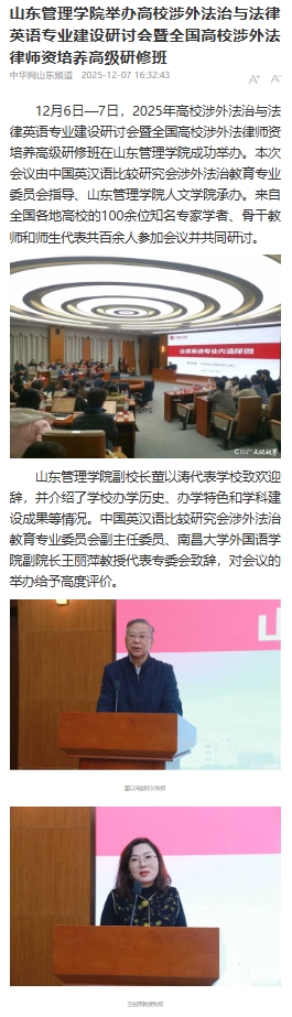 上一条:【中国教育在线】2025年高校涉外法治与法律英语专业建设研讨会在山东管理学院举办