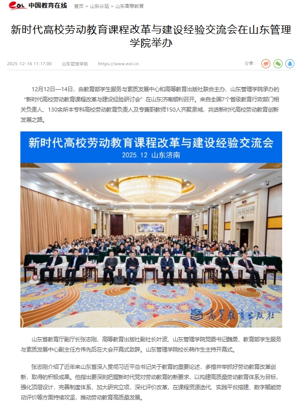 上一条:【大众网】新时代高校劳动教育课程改革与建设经验交流会在山东管理学院举办