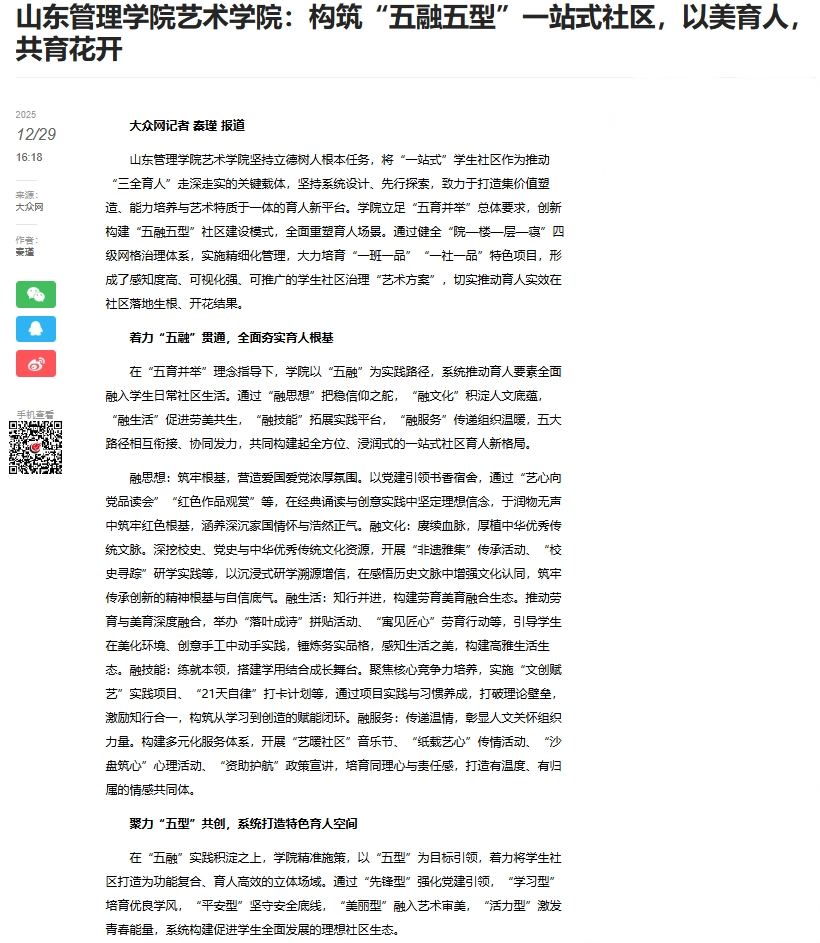 下一条:【齐鲁晚报·齐鲁壹点】山东管理学院人文学院:党建品牌激活育人新动能