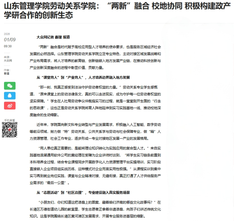 上一条:【大众网】破解专业思政“两张皮”,山东管理学院会计学院打造思政育人新格局